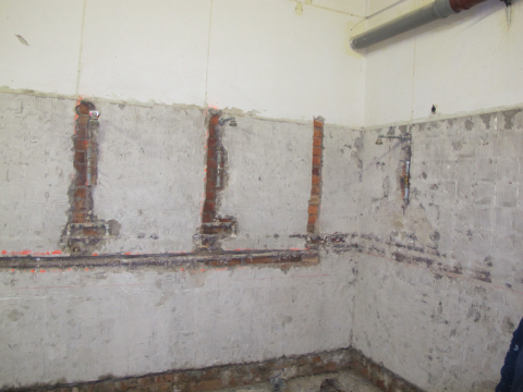 Športni center in pol stoletja stare kopalnice atletov in nogometašev: zdaj bo drugače! Prenova že poteka. Prenovili bodo po dve kopalnici in slačilnice. Od zgoraj pa kaplja voda in spodaj so kaverne...