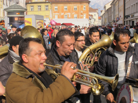 Pustni čas je tudi čas porok. Mladi par je v zakonski jarem skočil v Kranju, središče mesta pa je postalo prizorišče in - gledališče. Številni so namreč spremljali rajanje svatov in poslušali značilni melos z juga. Ja, mnogi Kranjčani so se pridušali, da bi si tako svatbo želeli tudi sami. No, vsaj zaradi vzdušja in muzike!