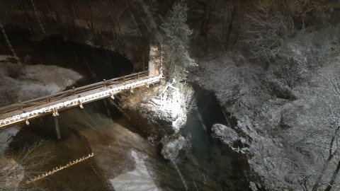 Če greste čez most pri nekdanji pošti, poglejte navzdol...Letošnja novost okrasitve Kranja je vidna tako podnevi kot ponoči...