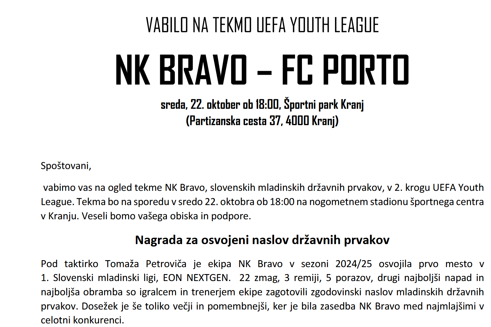 Vabilo mojega nogometnega soborca je torej zdravilo. Z veseljem bom bodril malde nogometaše v pomembni evropski tekmi kjer NK Triglav=Kranj igra samo vlogo gostitelja in nič več. Nismo tisti, ki bi v bordo dresih dokazali gorenjsko trmo, smo le sopotniki, ker je sedanje vodstvo klub dobesedno potegnilo v športno anonimnost....Žal. Ne pričakujem vabila od njih, še manj ga potrebujem. Zato pa so se me spomnili tisti, ki danes v mnogočem znajo in zmorejo uveljaviti slovenski nogomet skozi slovenske fante in slovenski klub. Čestitam.