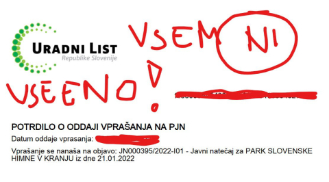SLEHERNI VAŠ EVRO ZA POLITIČEN PARK, KI SO SI GA IZMISLILI KOLEKTIVNO NA OBČINI KRANJ, BO NAMENJEN ZA UREJANJE ZEMLJIŠČA, KI GA ŽUPNIJA V KRANJU NOČE PRODATI. KO SMO TOLE PREBRALI, SMO RES "DOL PADLI": PRORAČUNSKI DENAR BODO ZAPRAVLJALI ZA CERKVENO LASTNINO?! ZOPET SMO IMELI NA TRMI PRAV: TO POČENJAJO VSEM NAM PRED NOSOM IN STAVBNA PRAVICA JE V NAŠI ZAKONODAJI JASNA ZADEVA....MI BOMO PLAČALI KAR BO NA TUJI ZEMLJI NASTALO.