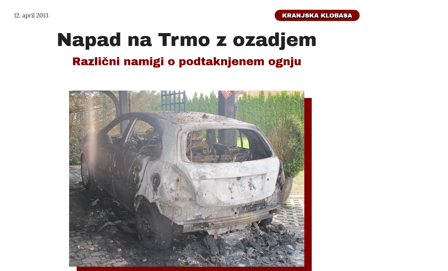 O šoku za domače ne bom pisal, ker so to osebne izkušnje. Sam sem bil prestrašen, a ne ustrahovan. Preživeli smo atentat, preživeli ogenj v domači hiši, preživeli vse posledice. 13 let nazaj! Naključje, da imam aprila rojstni dan me sili k prepričanju, da sem se takrat še enkrat rodil...ker bi bilo vse lahko mnogo huje. Pa ne jamram, ne smilim se sam sebi. Spomnim se tistih, ki jih je skrbelo zame in tistih, ki niti z besedico, klicem, sporočilom niso reagirali: na primer moje cehovsko društvo iz katerega sem hitro izstopil, poln gnusa do tistih, ki so neke druge napade obsojali - za lokalnega novinarja jim ni bilo mar. Sramotno, a je res.