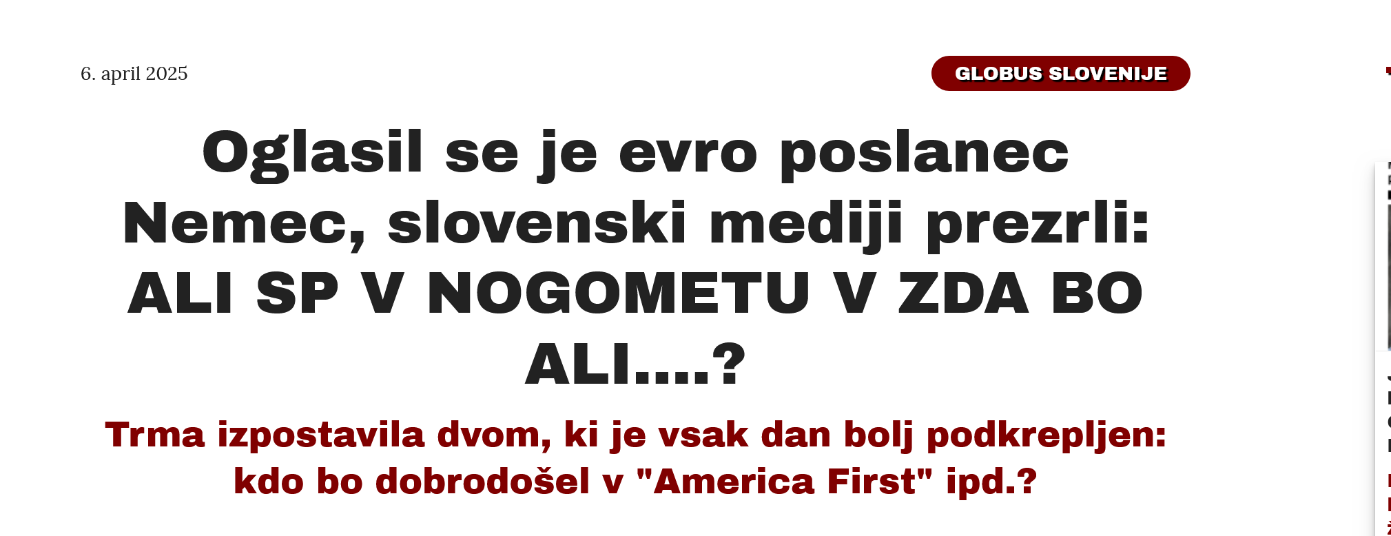 Moje pismo je šlo na medijske in nogometne naslove. Jasno: naši "glavni" mediji so ga vrgli v koš za odpadke, oglasil pa se je edino evropski poslanec Nemec /SD/, sicer nekaj časa aktiven tudi v nogometu. Potem pa se je zgodilo marsikaj in Evropa je tarča, da o drugih ne pišemo....